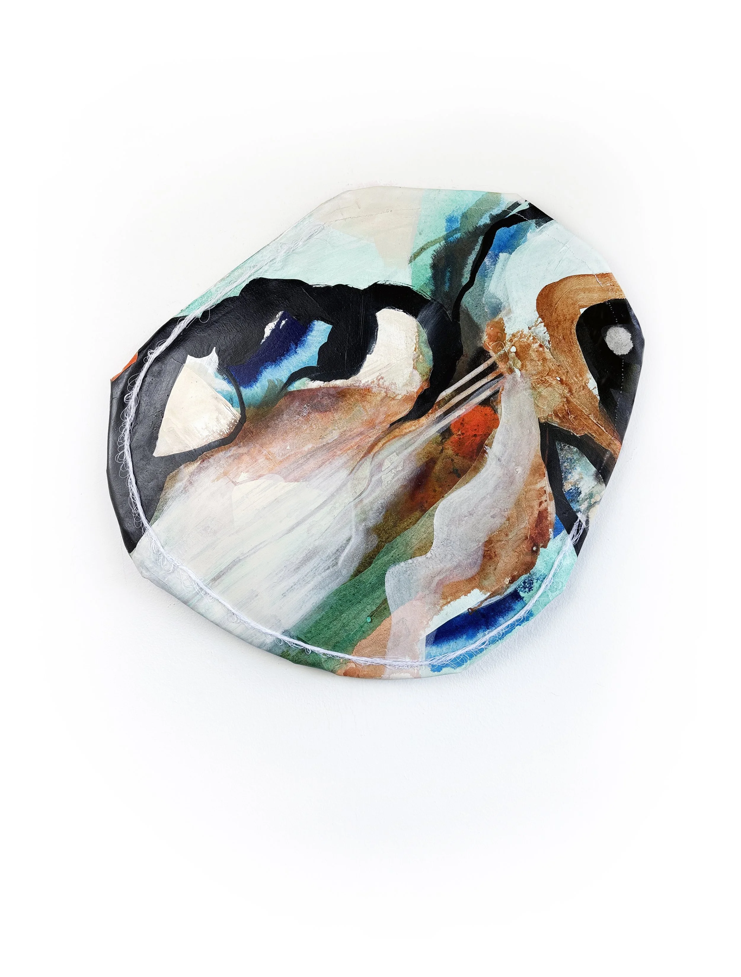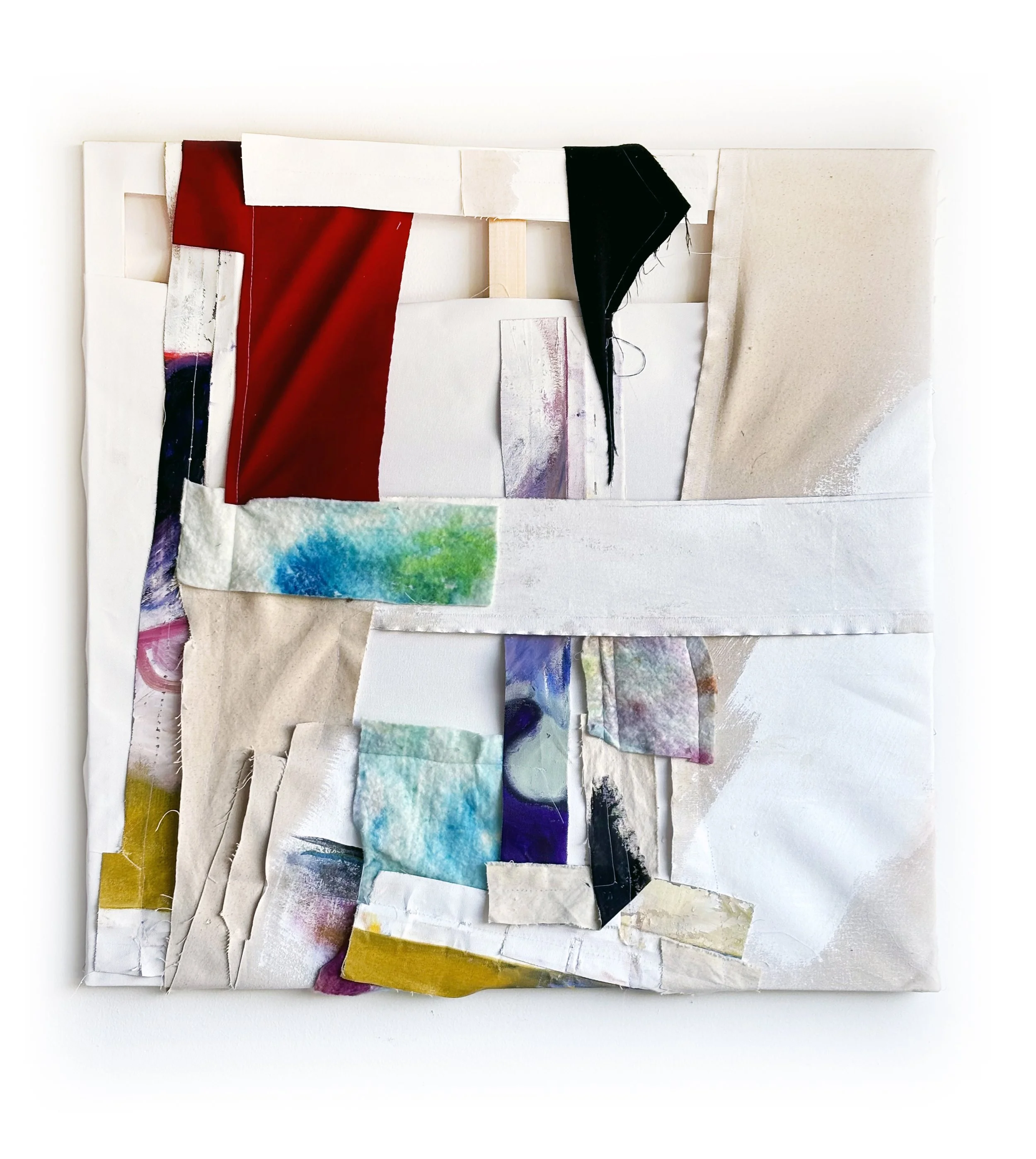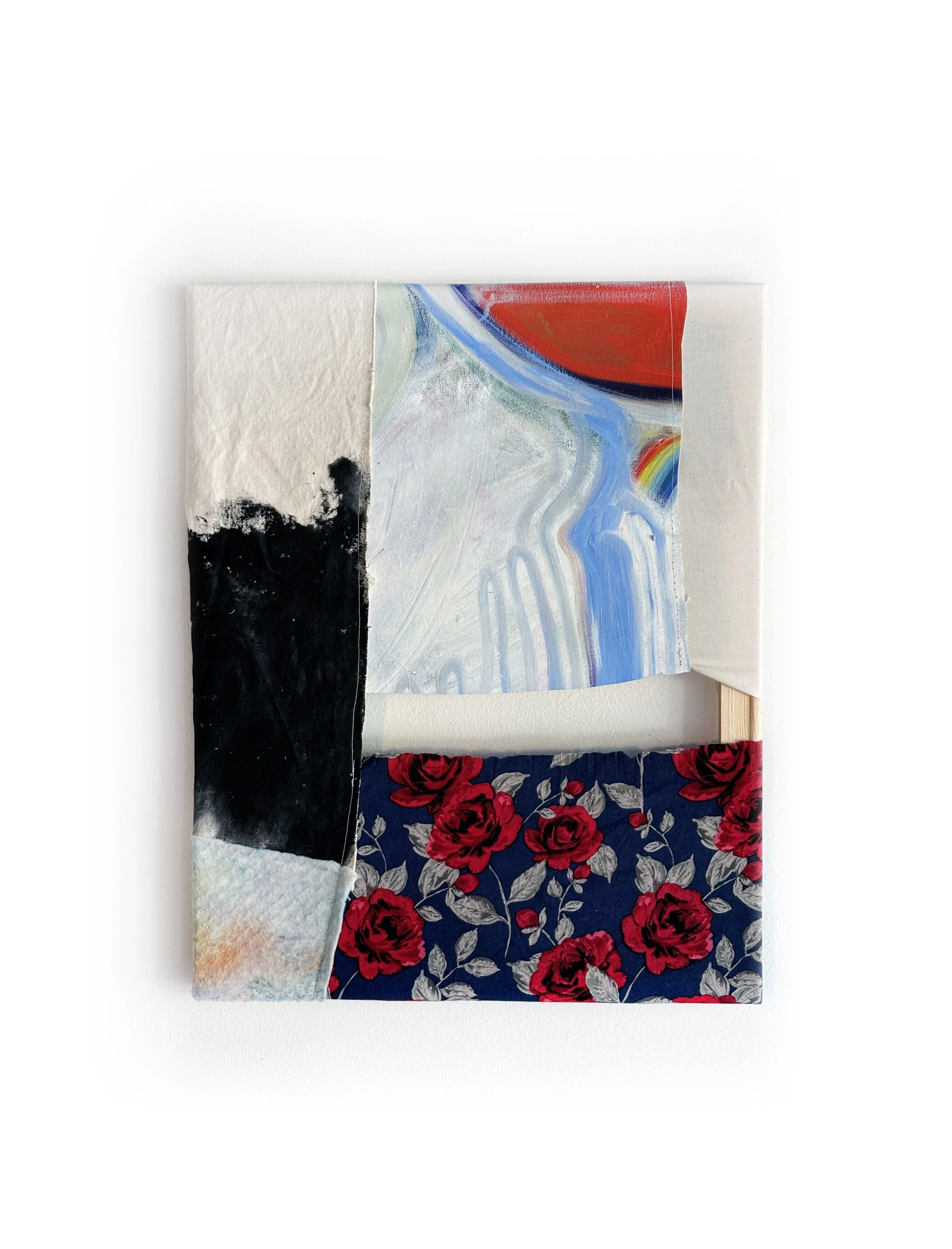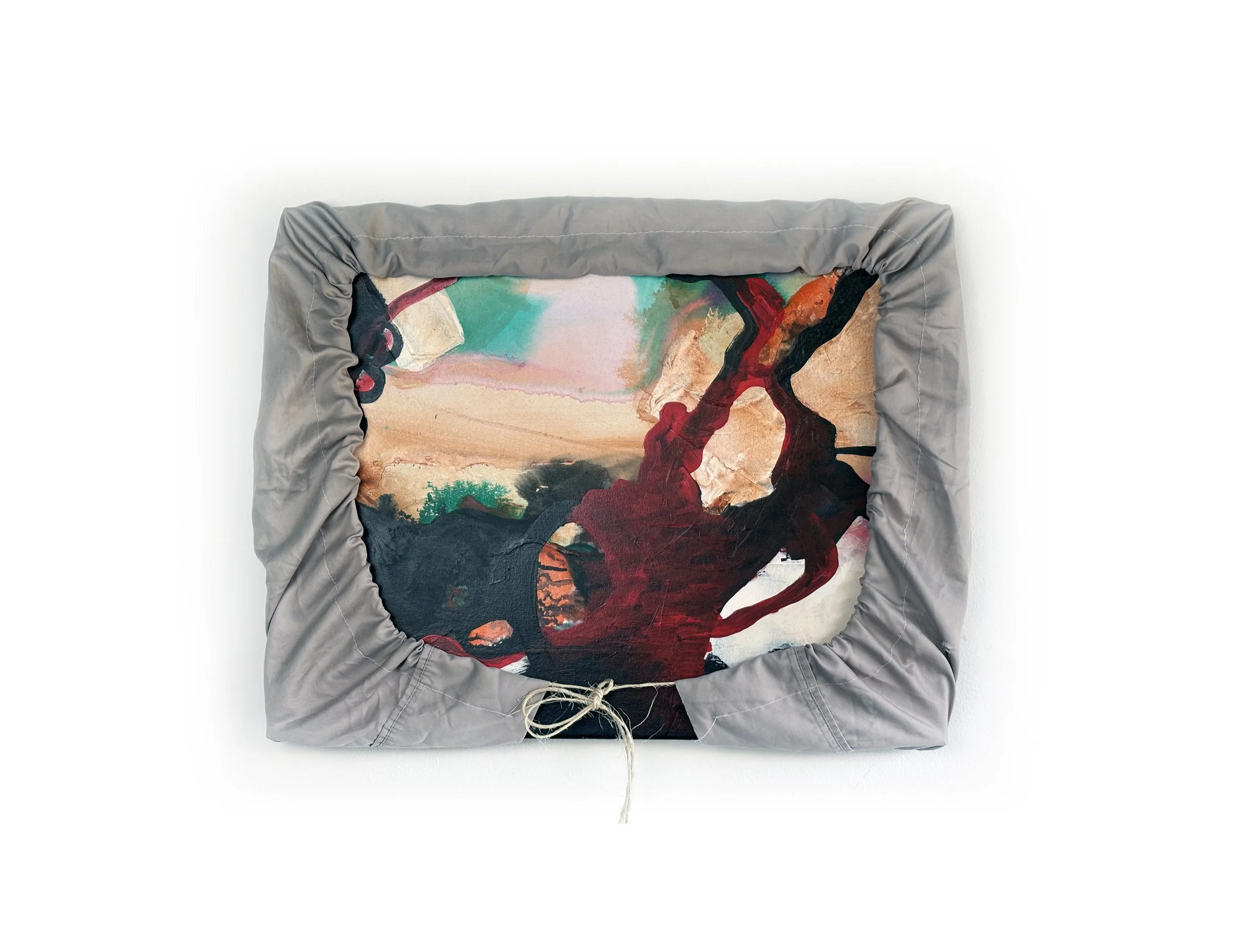 Fabric, acrylic, and oil on canvas -