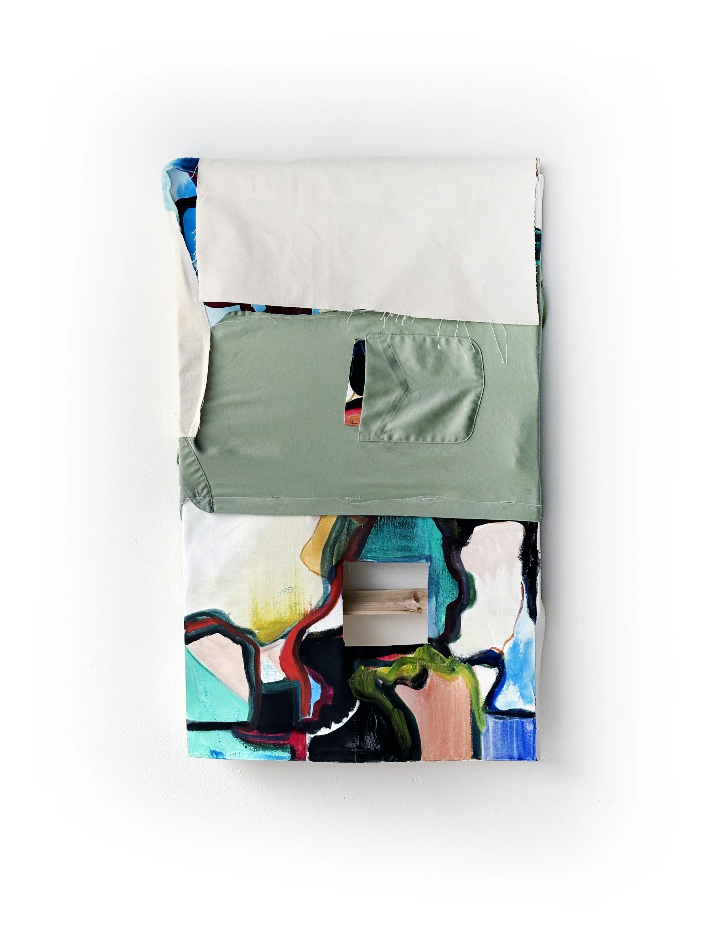 Paper, acrylic and pants pocket on canvas -